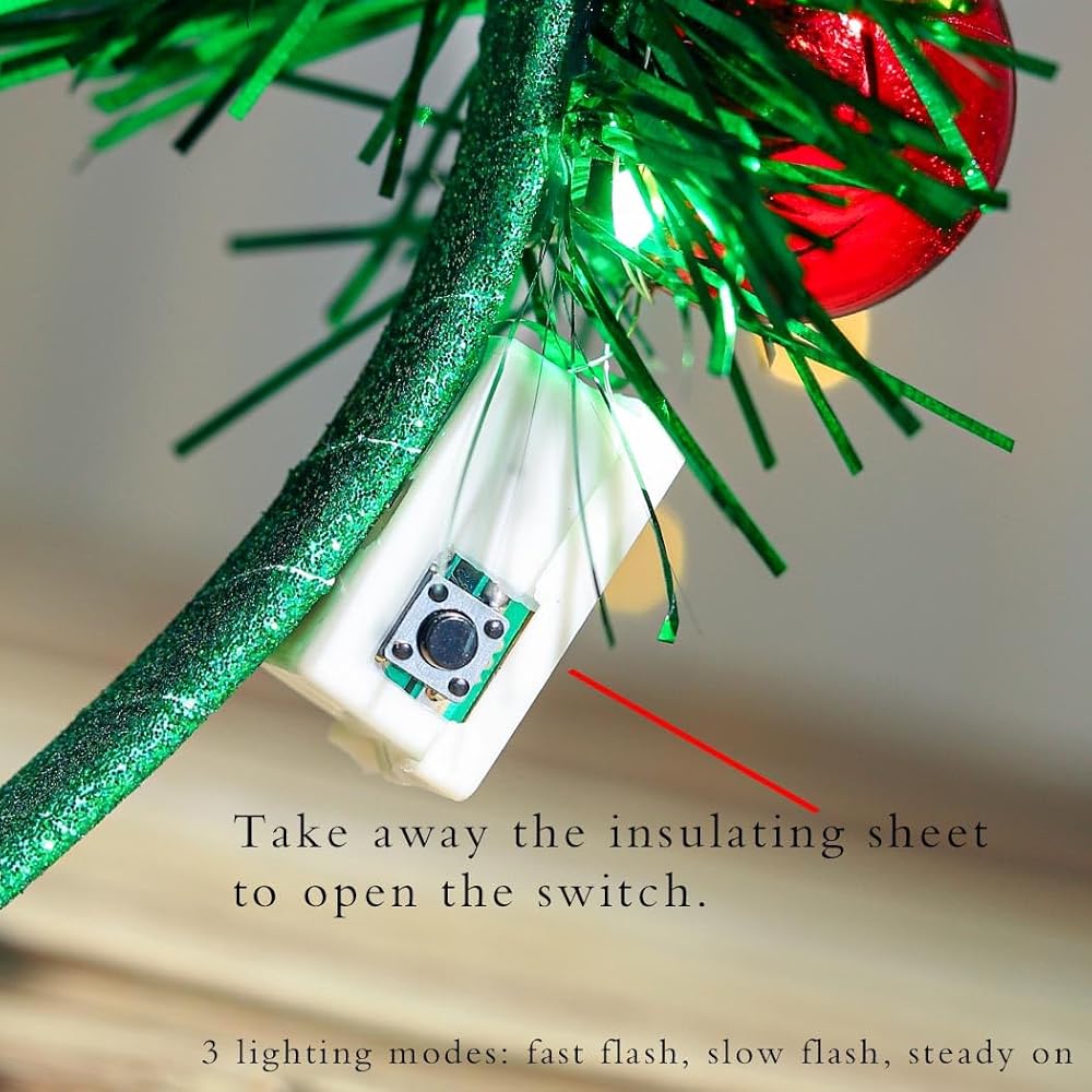 Xmas headband with led light, 3 button battery comes in a small plastic battery case that can be opened for easy battery replacement. Three flashing modes of the string light, fast flashing, slow flashing, no flashing, can be adjusted according to your needs.