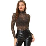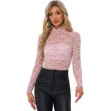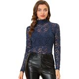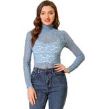بلوزة نسائية من Allegra K بأكمام طويلة وياقة مدورة ودانتيل شفاف من الدانتيل