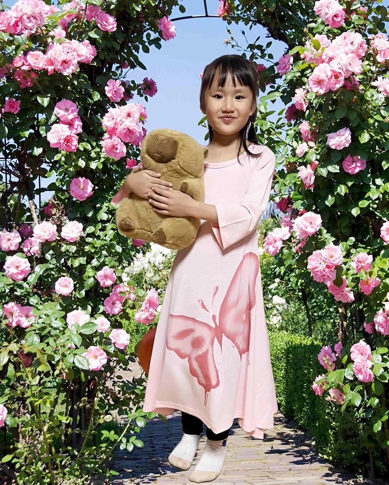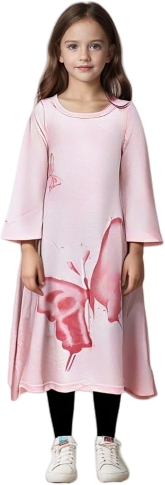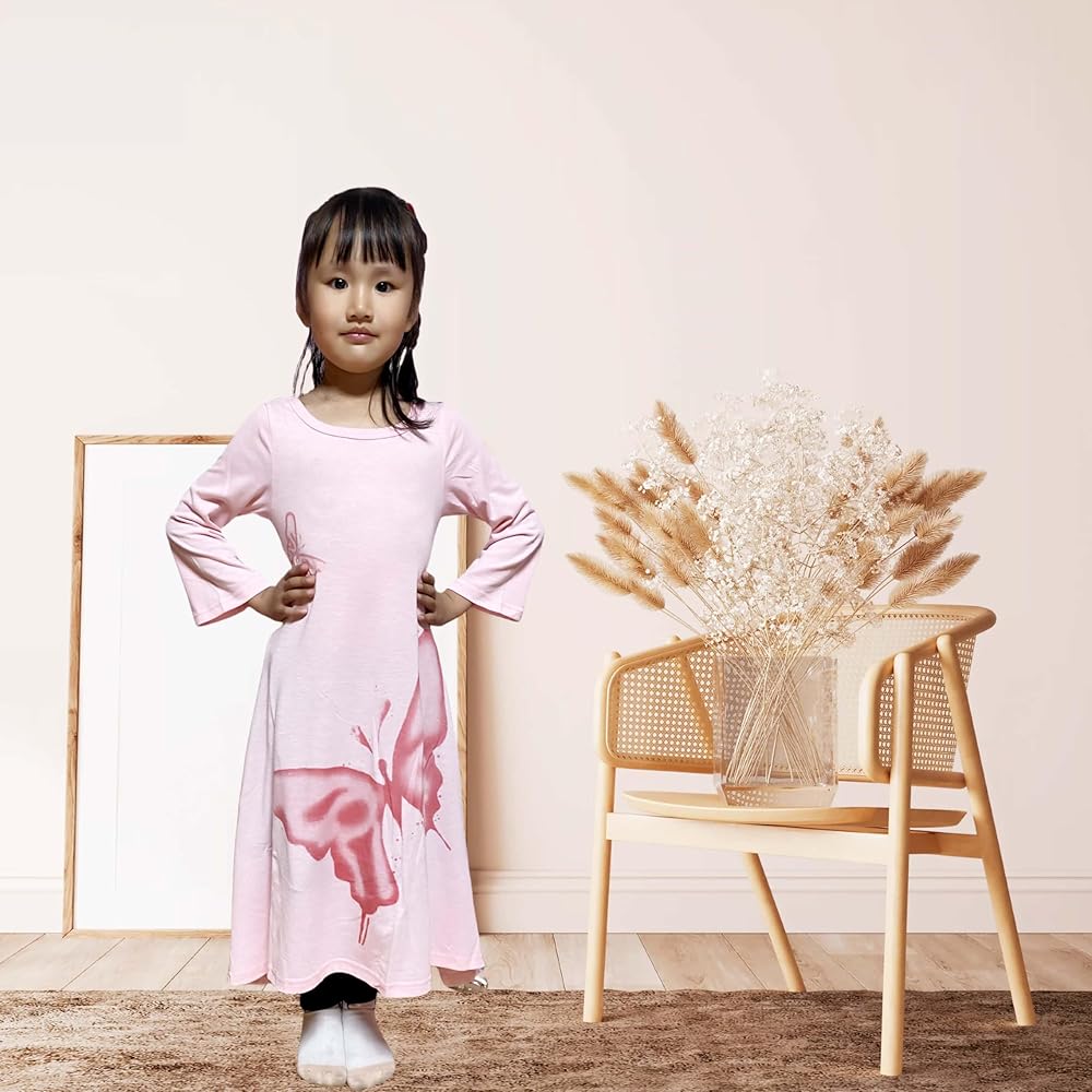Suitable for 3-10 Years girls, three quarter sleeve, Crewneck long sleeve cotton dresses almost fit for all season