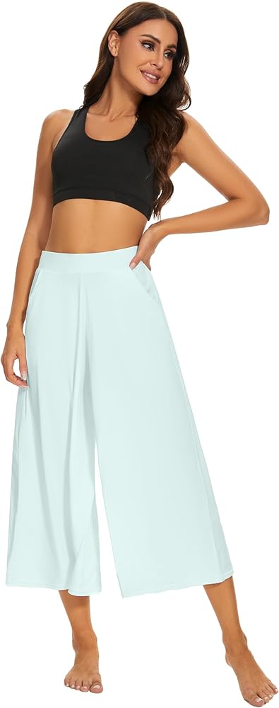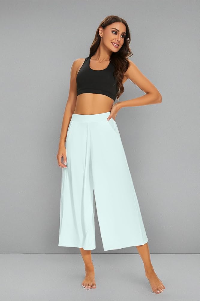 Crafted with high-quality materials, these pants offer a comfortable fit that allows for easy movement. The high-waisted design provides a flattering silhouette, while the wide-leg cut adds a touch of elegance. The pockets are a practical feature, allowing you to keep your essentials close at hand.Ideal for summer, these pants are lightweight and breathable, making them perfect for hot weather. The trendy design and loose fit make them suitable for both lounging and outdoor activities. Whether you're heading to a yoga class or simply running errands, these pants will keep you looking stylish and feeling comfortable.Available in a range of sizes and colors, these pants are designed to suit every woman's taste. From classic white to crisp blue, there's a color to match any outfit. Pair them with a dressy top for a sophisticated look or dress them down with a casual tee for a relaxed vibe.Upgrade your wardrobe with our Women's Yoga Pants with Pockets. Experience the perfect blend of fashion and functionality. Don't miss out on these trendy pants that are sure to become your new favorite.