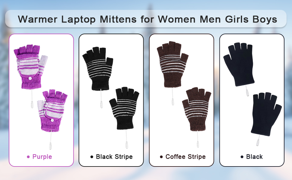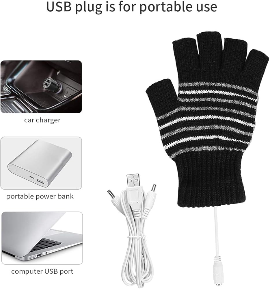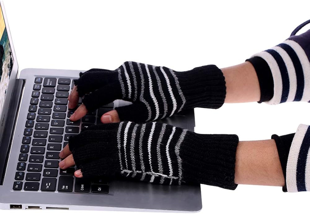 Petyoung USB Heated Stripes Gloves for Men Women Mitten, Unisex Knitting Wool Gloves Hands Warmer Laptop Gloves