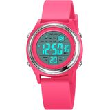 * Bright LED back lights (long press top left button to change) makes time reading super easy and fun.