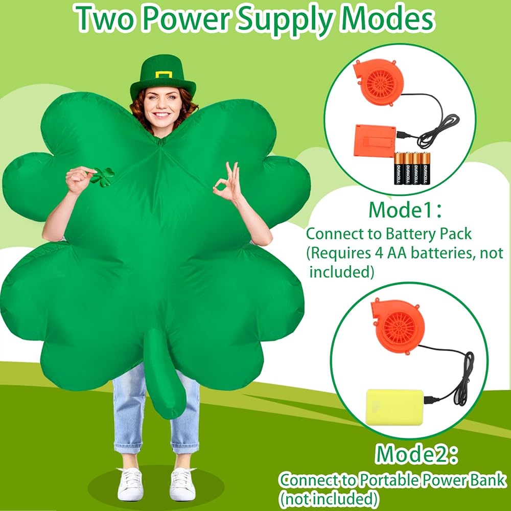 🍀🍀【One Size Fits Most】The St. Patrick's Day Four Leaf Clover Inflatable Costume is suitable for both men and women with a height of 5'1''-6'3''(155-190cm). Perfect for a St. Patrick's Day costume.