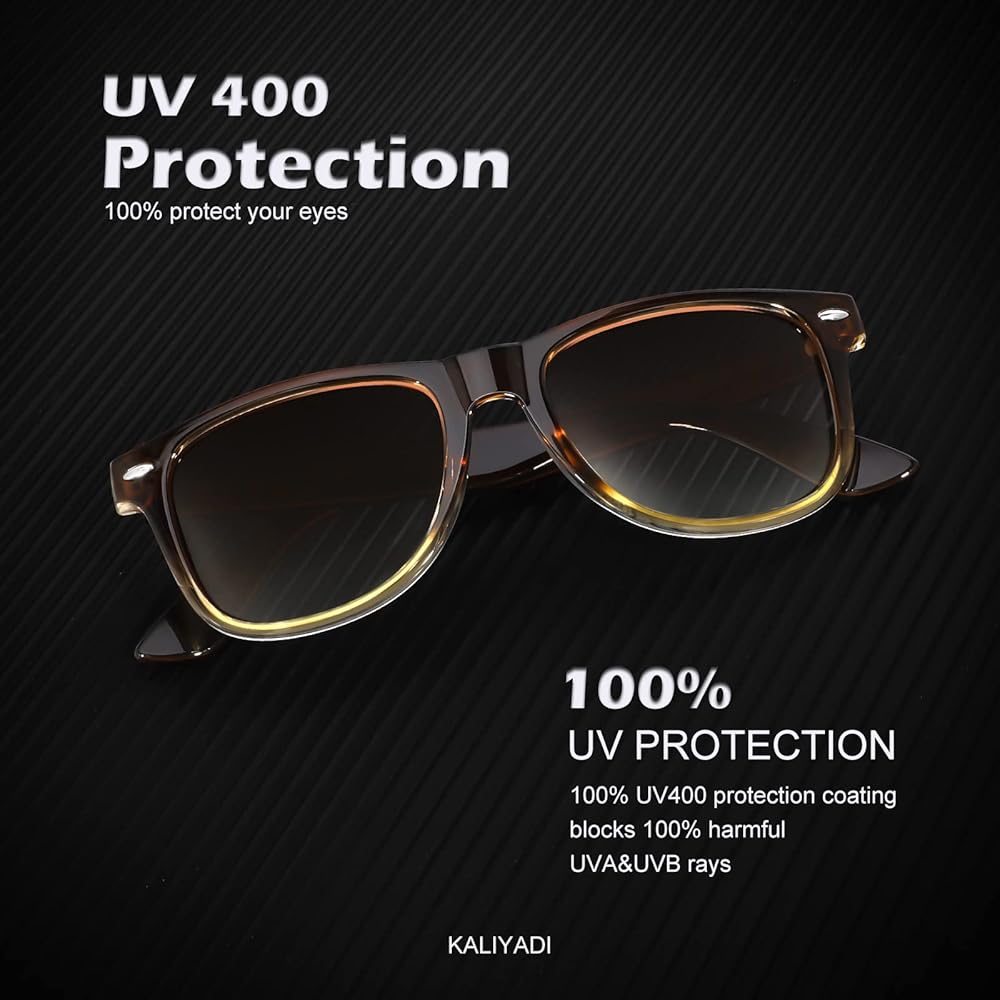 ★ Gift Idea Package and Brand Customer Service ▶ Classic sunglasses*3, microfiber pouch*3, microfiber glasses cleaning cloth*3, gift box*1. Our sunglasses for men women are also gift packed, which will be great gifts for your family and friends! All KALIYADI customers enjoy brand customer service for our polarized sunglasses. The integrity of every box and the quality of the lenses are double checked by third-party companies. And that goes with a lifetime support!
