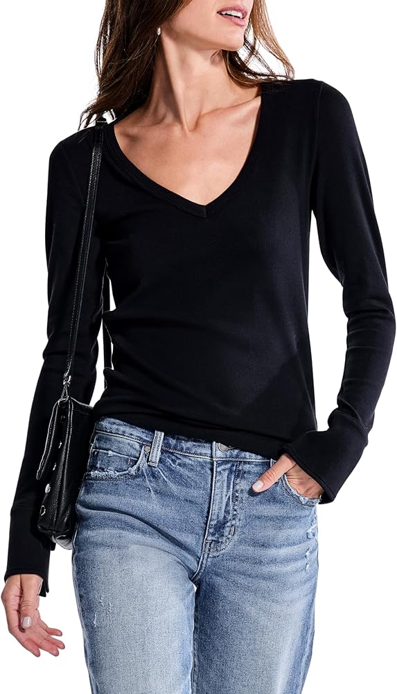 Made from our ultra comfy 2x2 rib, this fitted top with a generous V-neck is an essential layering piece: the perfect textured add-on or step one to any look. We especially love this one's cuffs that add a bit of extra detail. Designed for a fitted look and made from our soft cotton/modal blend with just a touch of stretch added for even more comfort.
