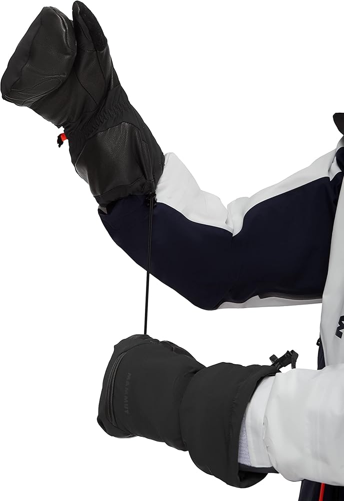 Mittens have the advantage that hands don't cool down as rapidly as the fingers warm each other. With the Stoney Mitten, you are protected from cold and wet conditions during any winter activity. High-quality, sustainably produced filling made from PrimaLoft Silver synthetic fiber insulation with recycled polyester, ensures excellent heat performance. Waterproof Mammut DRYtechnology membrane keeps the wet out. Robust goat leather and long cuffs offer additional protection. A practical glove leash prevents you from losing your gloves.