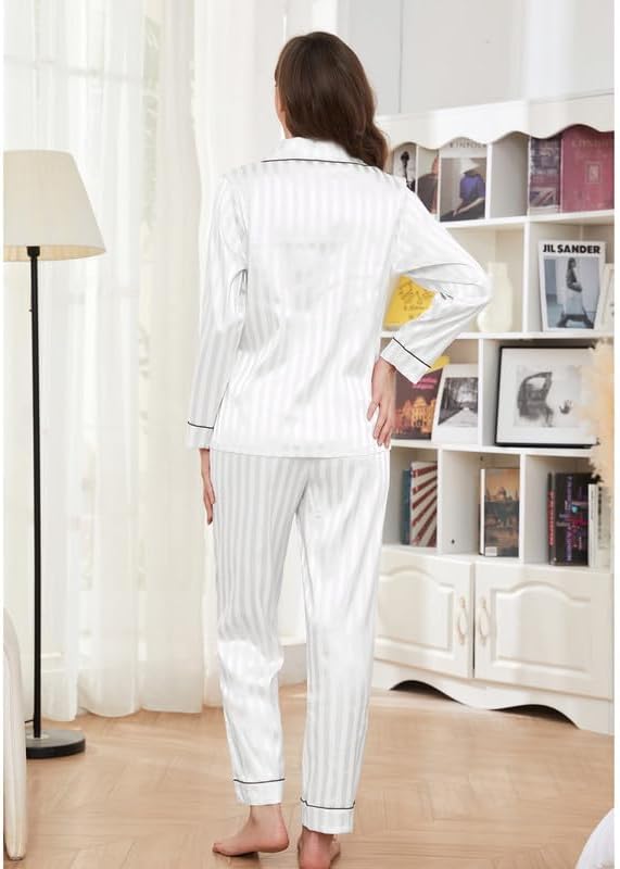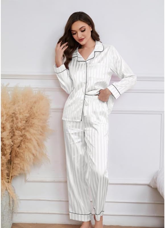 ❤️【Multiple Occasions】: Our striped silk pajama set are perfect for year-round comfort, sleeping, lounging around the house, daily wear, or casual travel, perfect for pajama parties, girls' day, bridal pajamas, hotels, vacations, travel