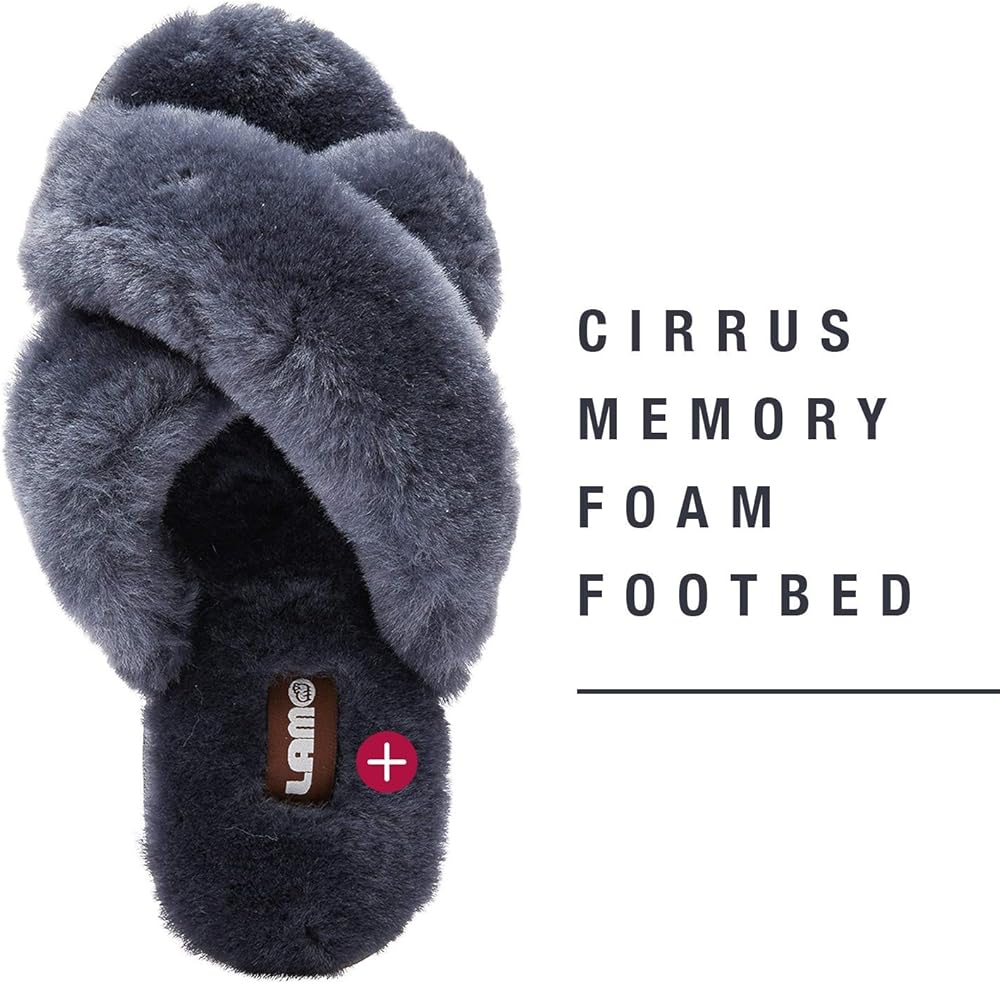 Women's Lamo, Serenity Slipper. The ultimate in plush comfort, this slide style slipper is made from super soft Australian Sheepskin! The low profile traction pattern TPR outsole allows you to wear these soft and cozy memory foam cushioned slippers outdoors as well. Australian Sheepskin upper is super soft, warm and great lookingSheepskin covered Cirrus Memory Foam footbedEasy to wear slip-on stylingDurable traction pattern TPR Outsole for indoor or outdoor wearSizing: S = 5-6, M = 6.5-7, L = 7.5-8.5, XL = 9-10, XXL = 11