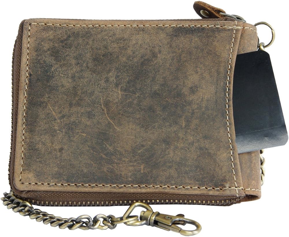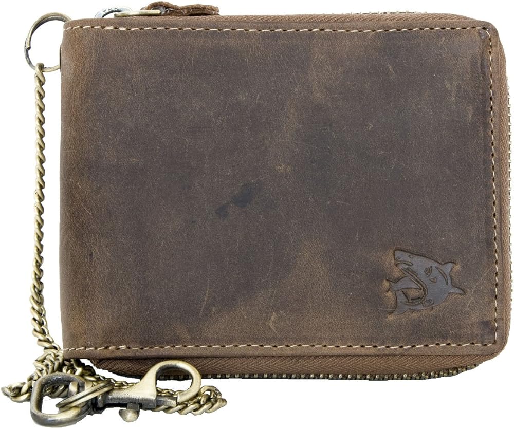 FLW Large Genuine Leather Wallet with Zip Around (zipper around) with Shark with Chain
