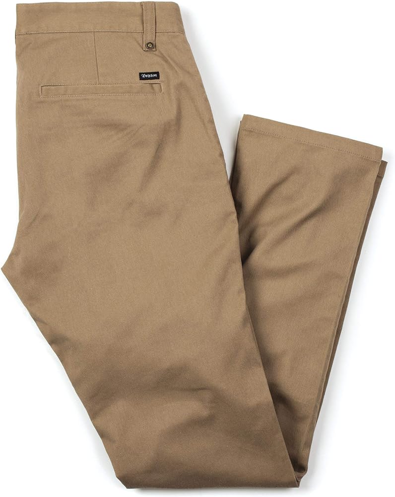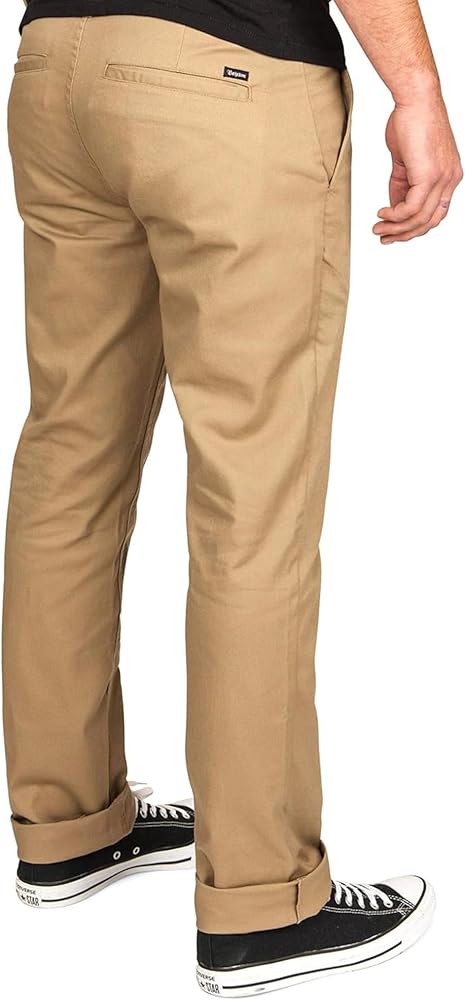 The reserve chino is a 9 oz. Cotton/polyester straight-leg pant with 1 percent stretch. It features a zip fly, graded inseam, custom Brixton labeling, and a 16 " leg opening.