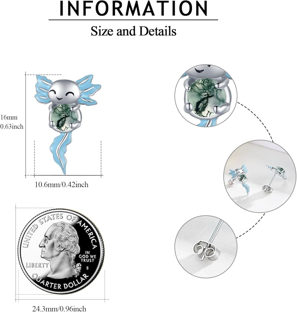 Axolotl Earring for Gifts: Axolotl Earrings come with YueYuan jewelry gift box and a polishing cloth inside, perfect for girls, women, daughter, kids, girlfriend, sister on graduation, birthday, Christmas, Thanksgiving Day and anniversary.