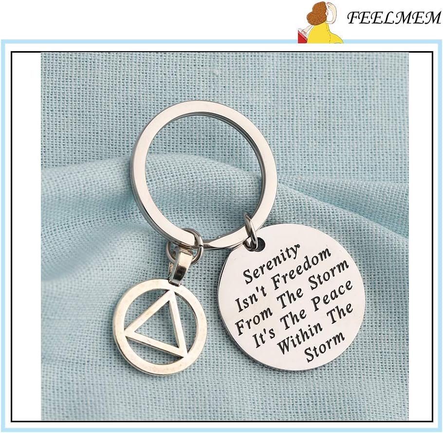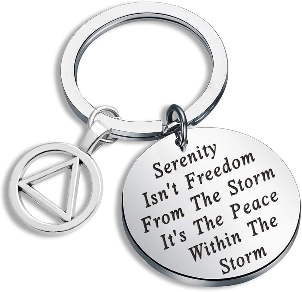 ❤ AA Recovery Serenity Prayer Keychain ❤This Sobriety Prayer Gift Keychain hand engraved with - Serenity Isn't Freedom From The Storm It's The Peace Within The Storm.That with AA Symbol Charm.