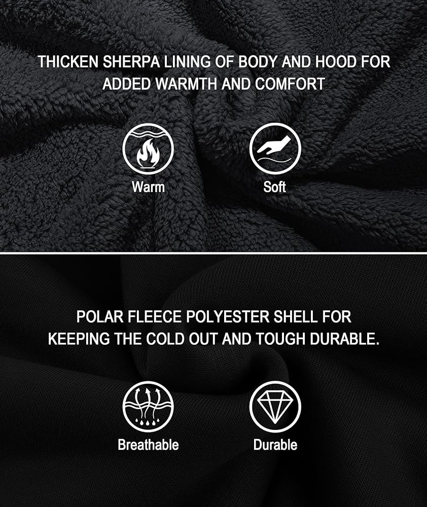 دافئ للغاية - أساور أكمام مضلعة وحاشية محكمة على الجسم مع حماية شاملة ضد الرياح الباردة. يمكن للأصابع المتجمدة أن تلجأ إلى جيب الكنغر الأمامي.
