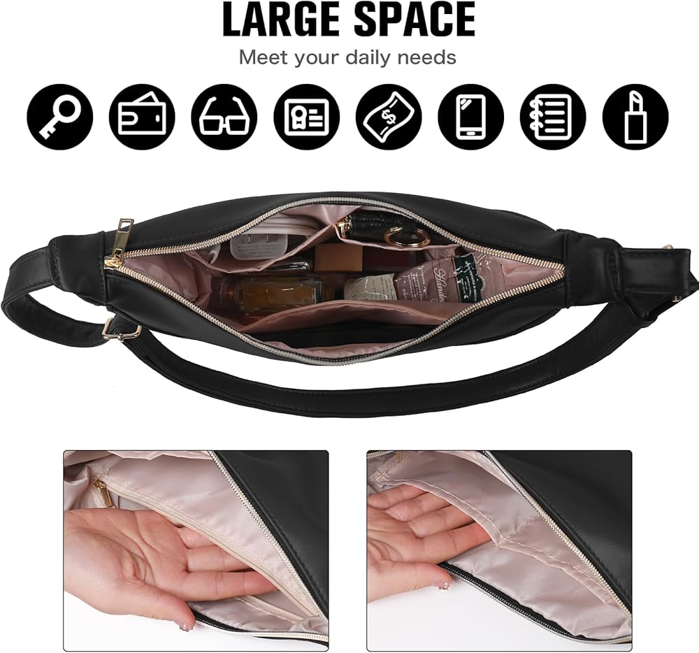 Multi-way to Carry - The crossbody bag size is 13'' x 3.94'' x 6.7''. With a adjustable shoulder strap, this crossbody fanny packs for women could be used as a small crossbody purse, sling bag or chest bag even a shoulder bag. With adjustable straps, you can tighten or loosen them to fit your size or activity needs.