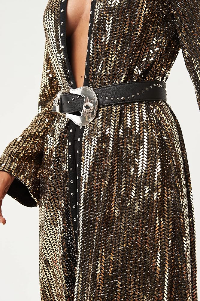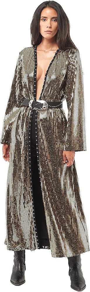 The Ross Tunic long streamlined silhouette is finished with a handmade studs ribbon for a rocker look. It's a collarless, full-length style that is perfectly clean and simple, . The Tunic is crafted in a luxurious metallic blend for a sophisticated feel.