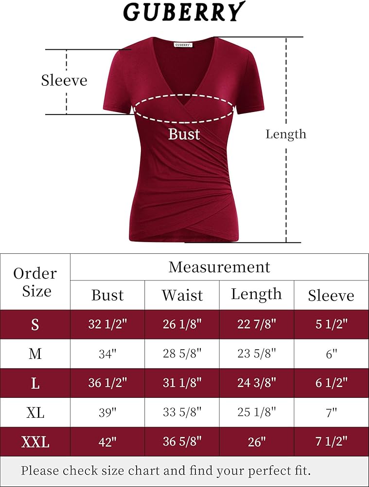 GUBERRY Women's Deep V Neck Short Sleeve Unique Cross Wrap Sexy Slim Fit Tops