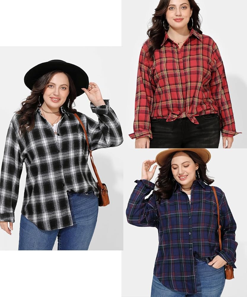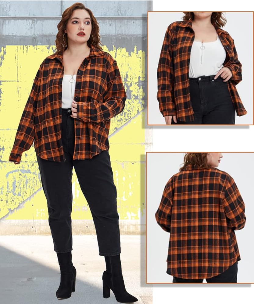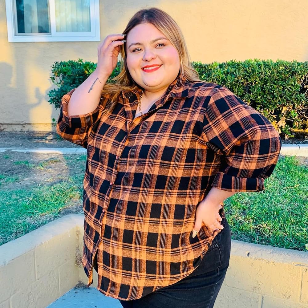 【Features】Plus size button down shirts comes with collared, long sleeves with button closure cuffs. This plus size women flannel shirts can be used as a simple shirt or also can be a cardigan, oversized fit, loose fit for most body shapes.