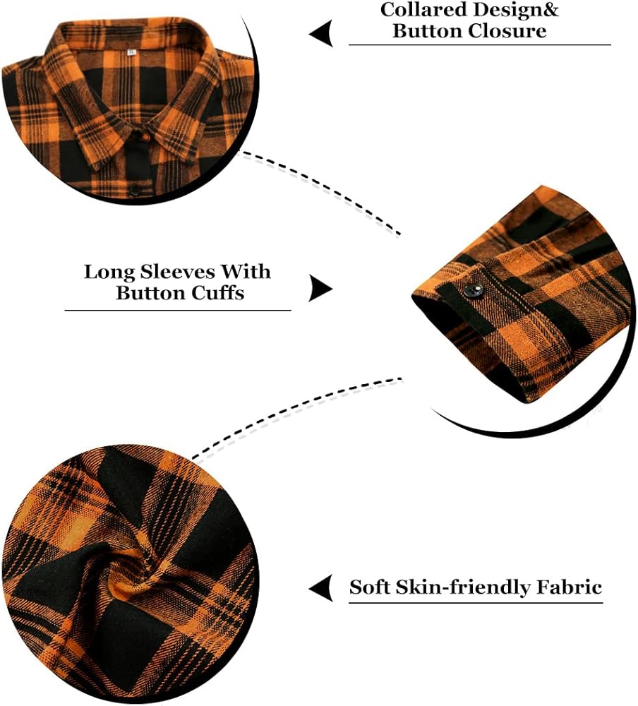 【Oversized Plaid Shirt】The plaid design is very suitable for Halloween, Christmas, Easter, etc. It fits the festive atmosphere, and it's very special to take photos with family and friends. Plus size fall winter blouse also very fashionable to daily wear!
