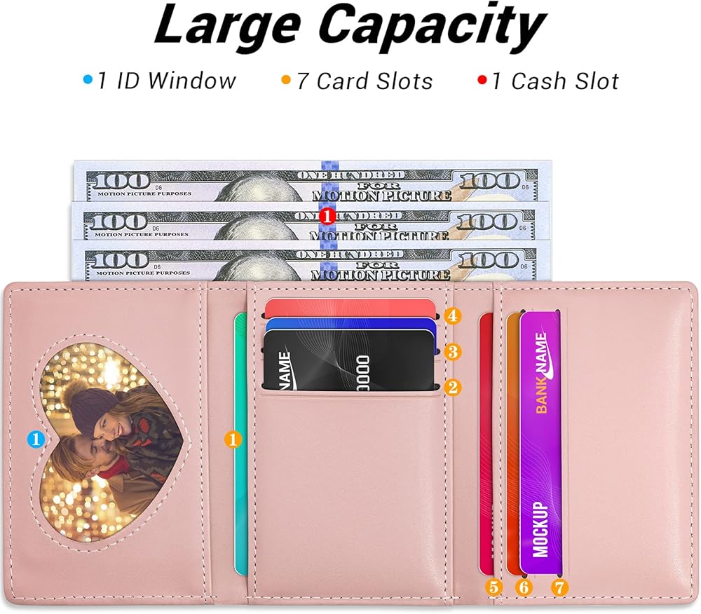 [Bi-Folds Wallet with Roomy Space]This leather purse with 5 card slots, 1 cash slot, 1 ID window and 3 zipper coin pocket for meeting daily use, which can hold your credit cards, coins and some special pictures which you loved, etc. Using this slim minimalist small wallet will give a good place for your cards and other essentials, there is no need to dig in your bags any more.