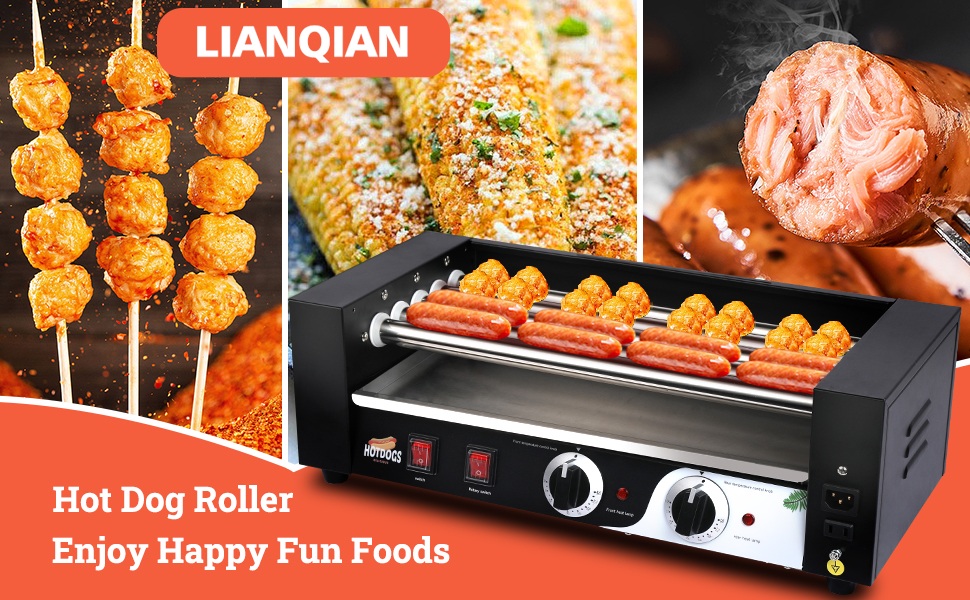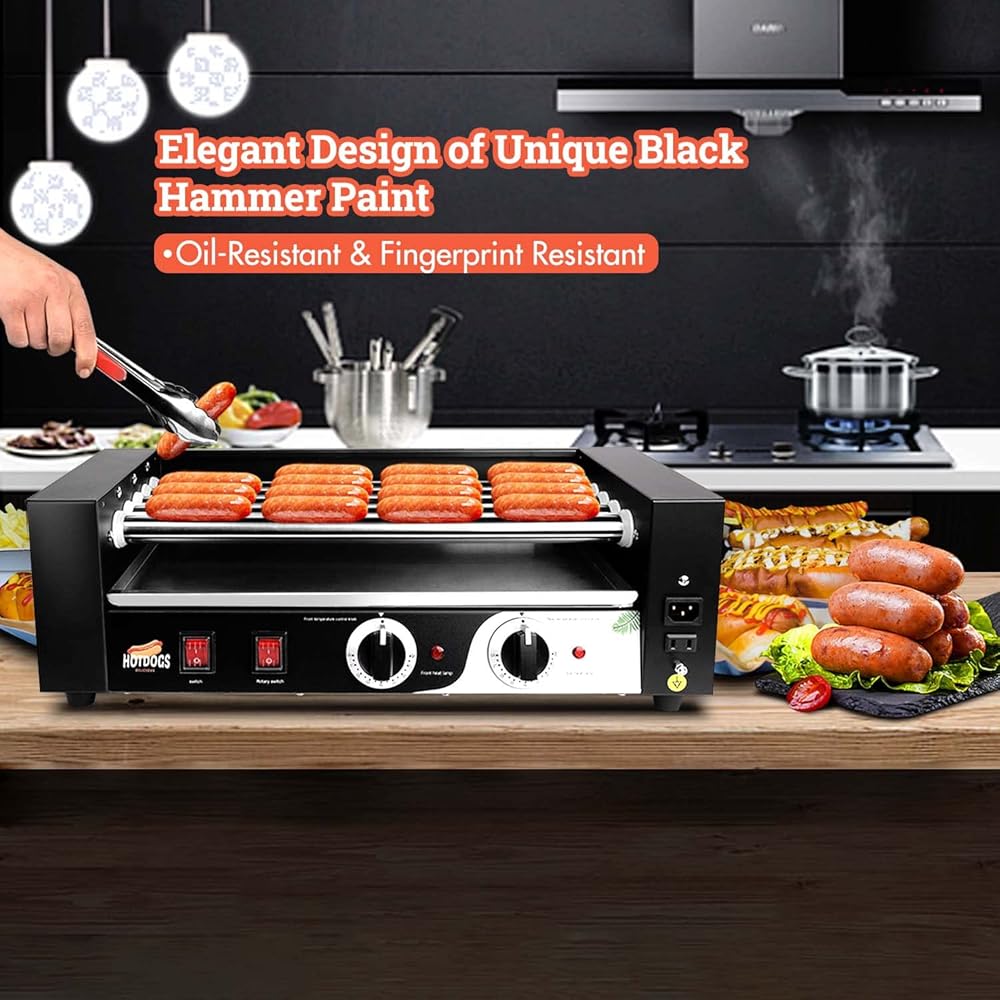 🌭Low-key Luxury Black Appearance: The elegant design of the unique black hammered lacquer is oil and fingerprint resistant.Hot dog roller machine is as good as new even after many uses.