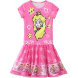 Princess Peach Dress for Girls is printed with cartoon princess patterns, super adorable, your little girls must can't wait to wear this dress with her favorite character