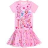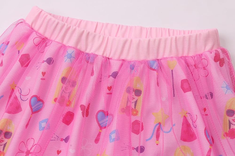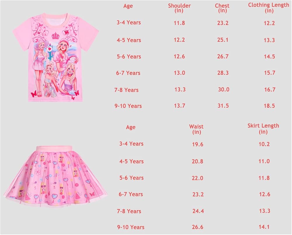 Package Includes: 1 x Princess Peach Shirt, 1 x Princess Peach Skirt, both printed with cartoon princess patterns, super adorable, your little girls must be happy with her favorite character dress