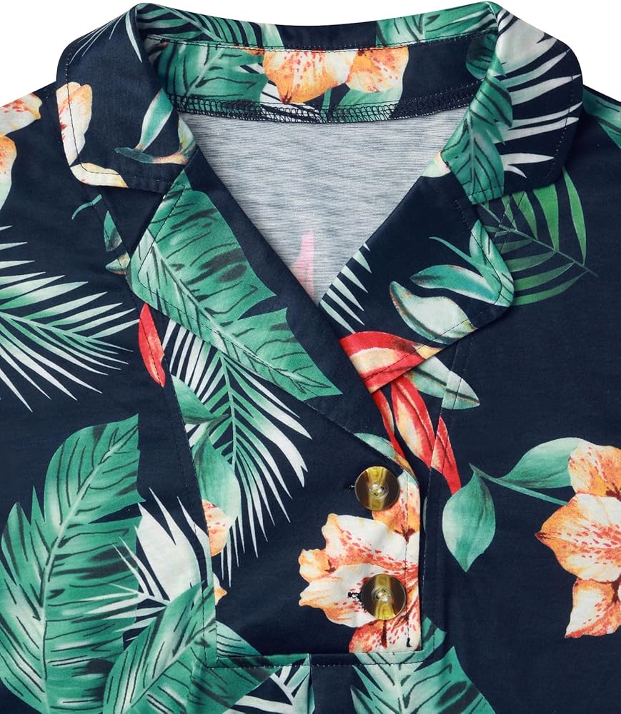 Occasions: The tunic tops with buttons are suitable for luau party, vacation, cruise, travel, beach, hawaii, going out, date, shopping, work and business, dress up or dress down easily.