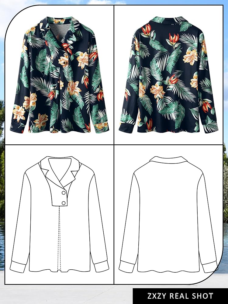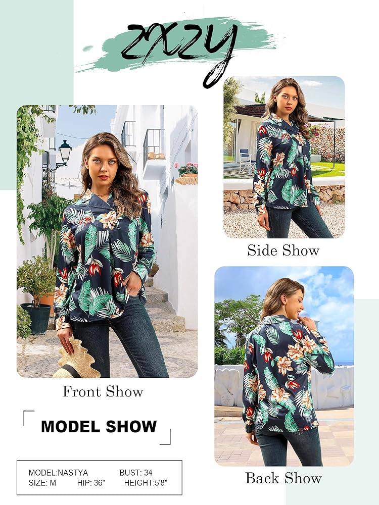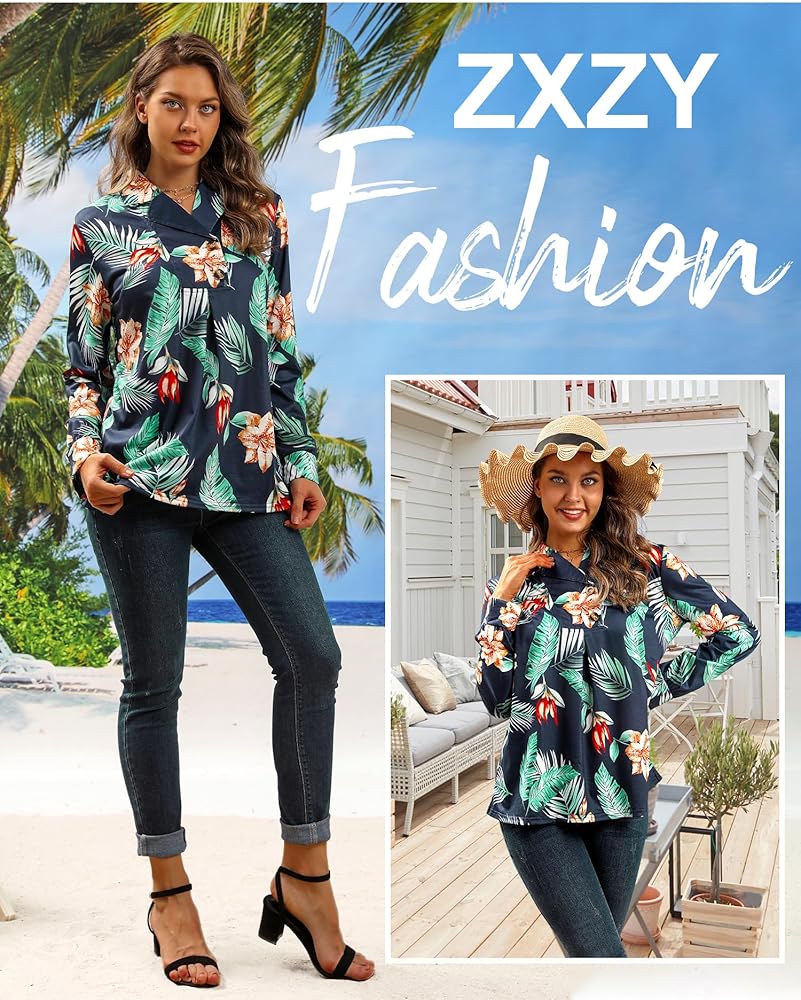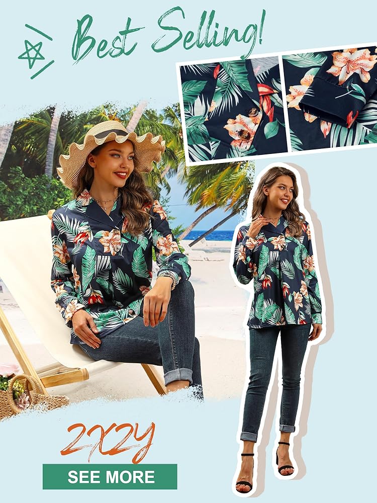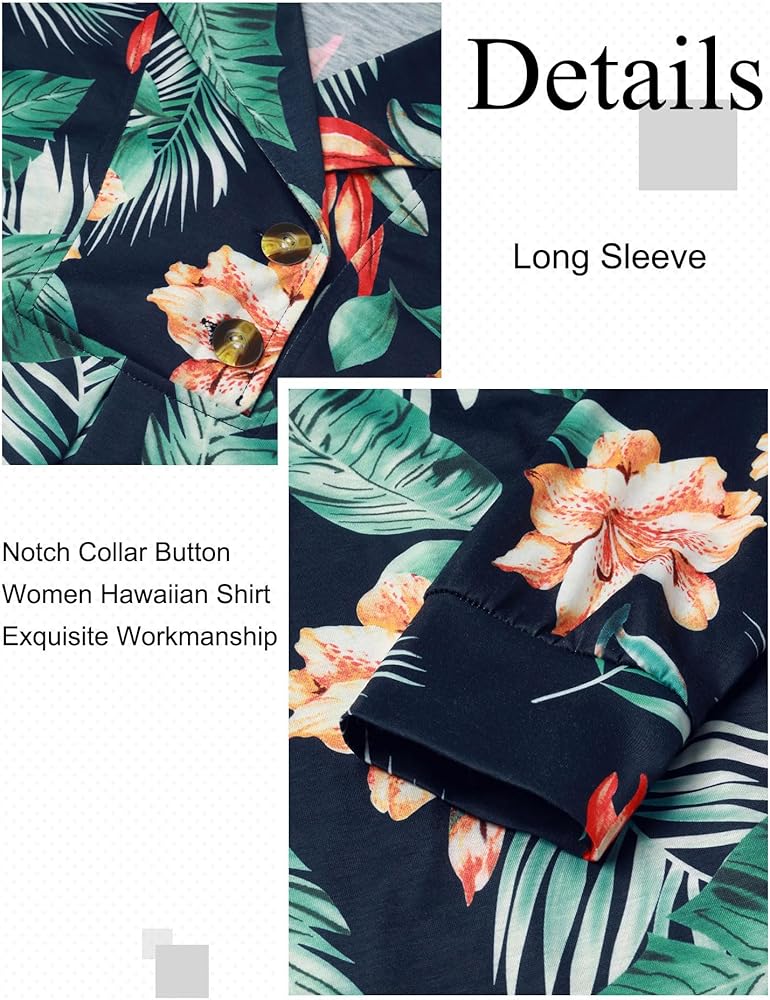 Material: Stretchy fabric, cotton blend, soft, comfy womens hawaiian shirts and blouses, light weight fall/spring tops for women