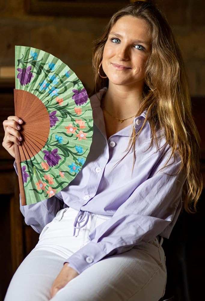 • 🌸 Authentic Spanish Craftsmanship: Experience the allure of Spain with every wave of this handcrafted folding hand fan. Artisanal skills passed down through generations ensure each fan is a unique piece of wearable art, perfect for adding a touch of elegance to any outfit