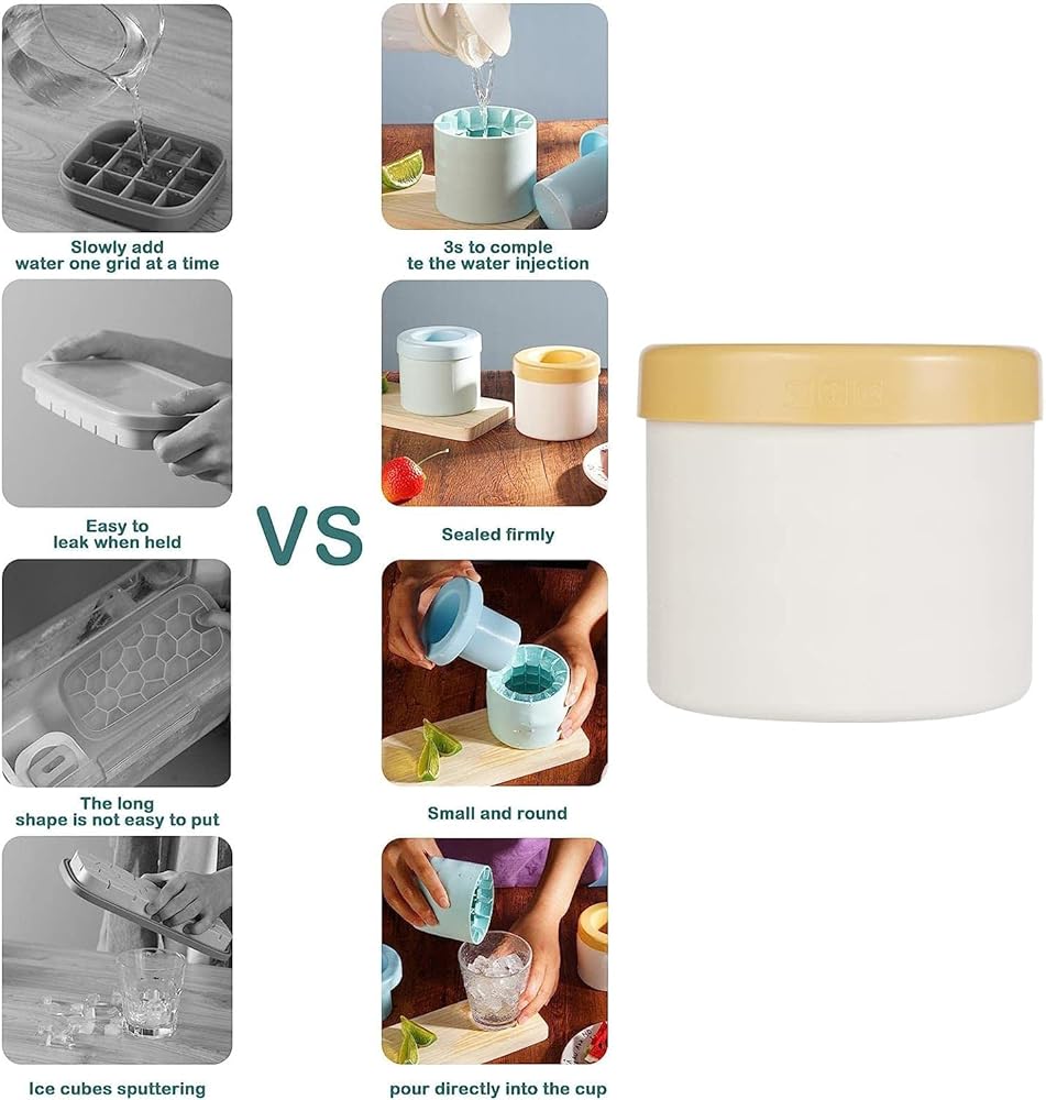 This is a 3D silicone cylinder ice molds that can be used to make ice cubes. You can use it for various beverages such as cola, juice, coffee, milk tea. This would be a great gift idea for friends or family who love to make ice. Material: food grade silicone + ABS Mould: about 3.54*3.15*3.35 inches Ice cubes: about 0.5 inches Number of ice cubes: 60 Packing List: 1* Ice Bucket Production steps: 1.Pull out the plastic inner cylinder and pour water into the silicone container, slightly more than 2 grids, not more than 2 and a half grids; 2.Slowly insert the inner cylinder with the cover into the silicone cavity, pays attention to rotate it to the bottom and hold it down, and then gently pinch the silicone side under the cover to vent the inner cylinder to prevent the inner cylinder from floating; 3.Put the molds at room temperature for a few minutes; if you don't want to wait and press hard, you can pour a proper amount of hot water into the inner cylinder, pour out the hot water for about 10 seconds, and then easily pull out the inner cylinder; 4.Press the outer wall of the silicone to continuously adjust the angle to remove the ice cubes. 5.We recommend freezing for 4-6 hours. NOTE: 1.Please allow 1-2cm differs due to manual measurement; 2.Due to the lighting effects and shooting angles, the color of the item and that shown in the picture might have a nuance.