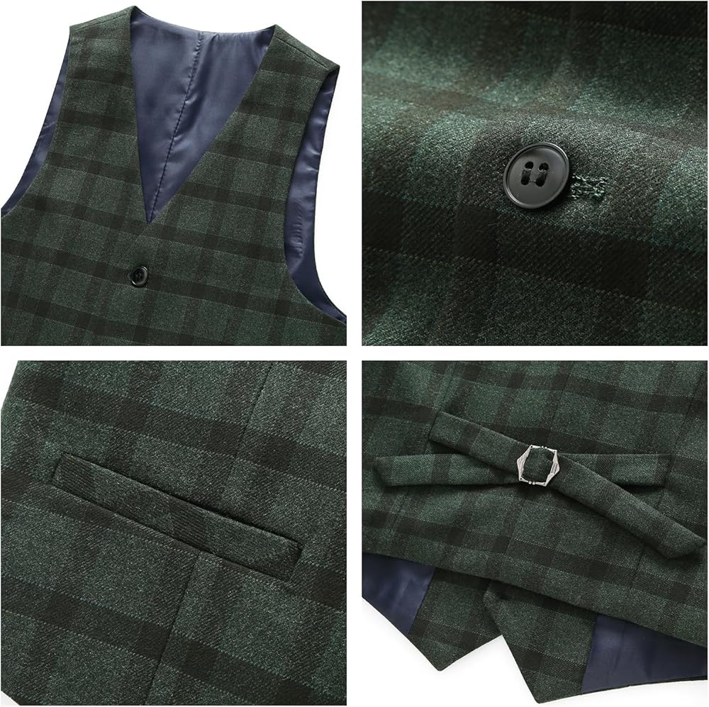 3PCS SUIT: This boys' formal prom set includes a blazer jacket, pants and vest. With its unique checkered design, the plaid suit displays a classic and elegant fashion style. The plaid suit blends traditional and modern elements, can make your boy look more sophisticated for weddings, dinners, ring bearer, Halloween parties, first communion, birthdays, shows, graduation, prom, school activities, valentines and choir or other special occasions