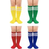Toddler Soccer Socks: Girls athletic socks are suit for 1-9 years old boys girls. They are easy to put on and off. Solid color and classic three-stripe design are loved by most children.