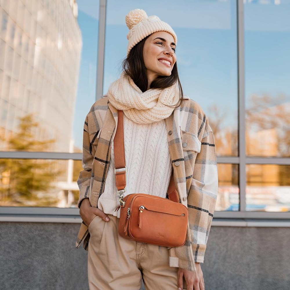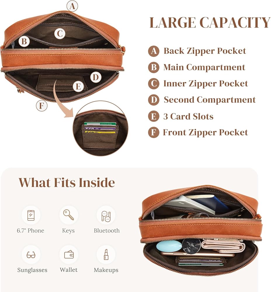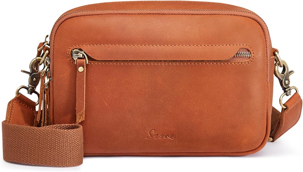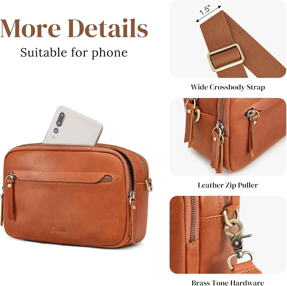 Leather Crossbody Bags for Women: This crossbody bag is crafted from full grain cowhide leather(genuine leather), bronze tone hardware and neat stitching to give the bag a retro look and it can stand on its own