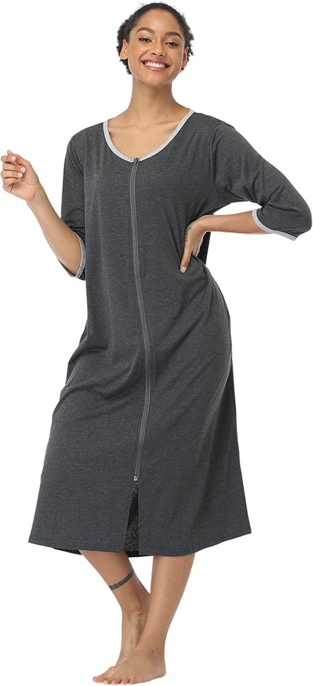 ♡ Perfect as Maternity Dress : Women maternity robe for hospital is best choice for mother to be, because the zipper closure is quite convenient for breastfeeding.The loose zipper nursing nightgown will bring a comfortable and pleasant dressing feeling during pregnancy or for hospital stay after giving birth