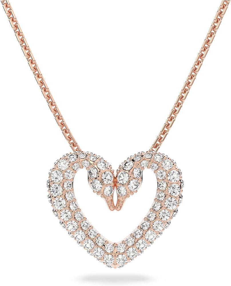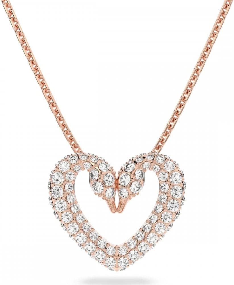 Items delivered: (1) Swarovski Una pendant necklace, heart-shaped double swan design with sparkling white crystals, on rose gold-tone finish chain, complete with Swarovski necklace box