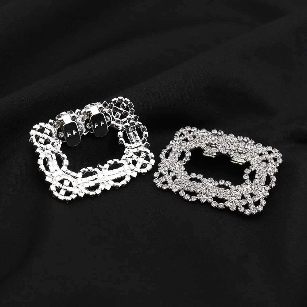 Micro Traders Crystal Square Shoe Clip Boots Buckle Removable High-heel Wedding Bridal Party 42.5mmx56mm