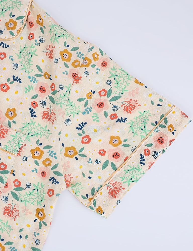 The womens kawaii cute pajama set design with chest pockets, floral summer short sleeve pj sets great for women, teens, womens, and kids, buttons down closure is durable and comfortable wearing, also suitable as casual loungewear or homeware