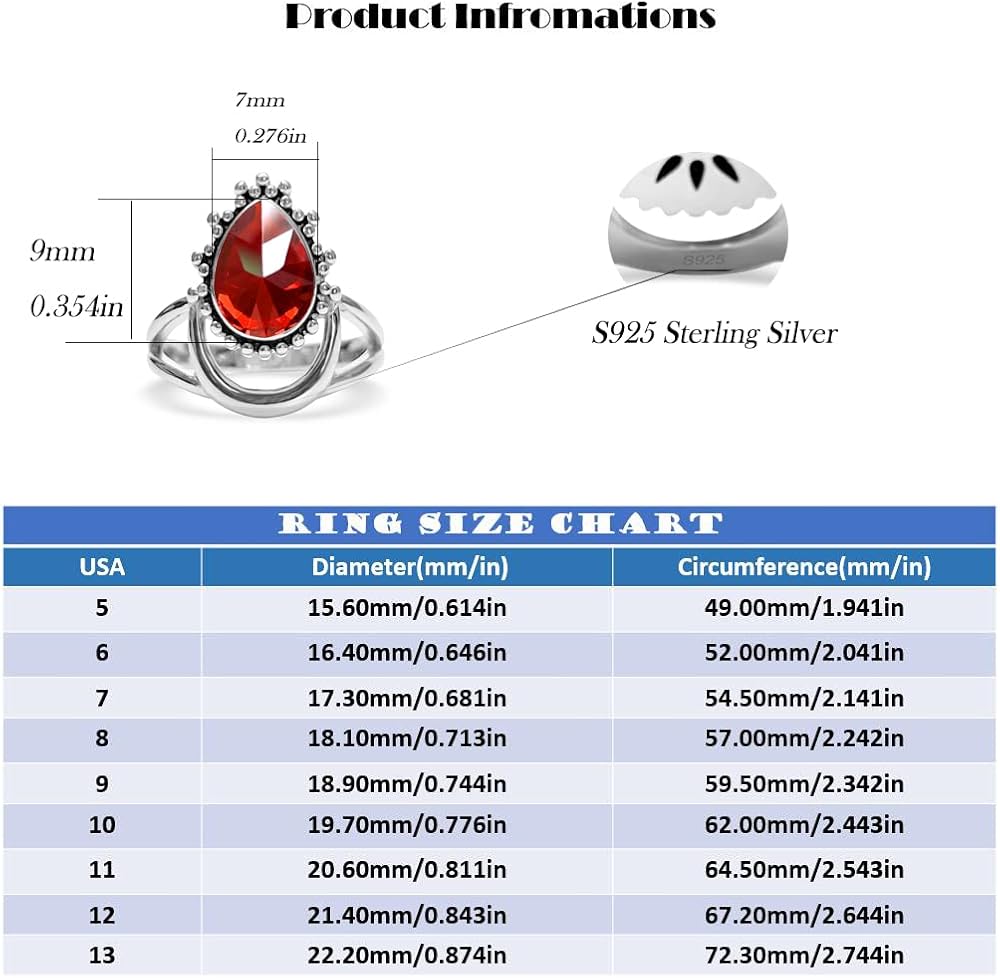 ♥MATERIAL&SIZE♥Sparkling 5A cubic Zirconia,rare pyramidal shape,s925 sterling silver,hypoallergenic and lead/nickel free. the ring will never be oxidized, no fadding, reduce allergies, will not irritate the skin, will not be heavy, high polished.Strictly quality inspection.There is no defective products.The waterdrop shap stone size 7mm *9mm,and the rings are strictly measured,ensure what you get is standard size ring.