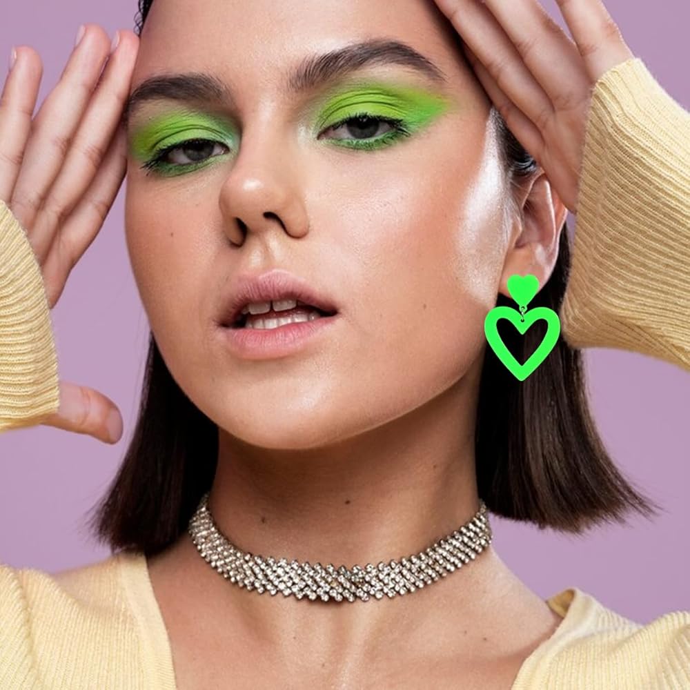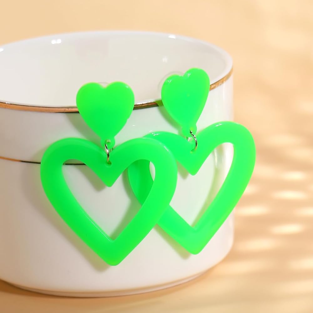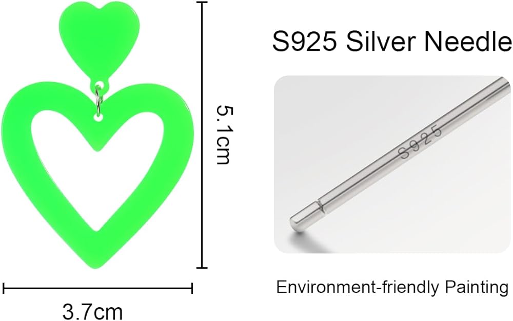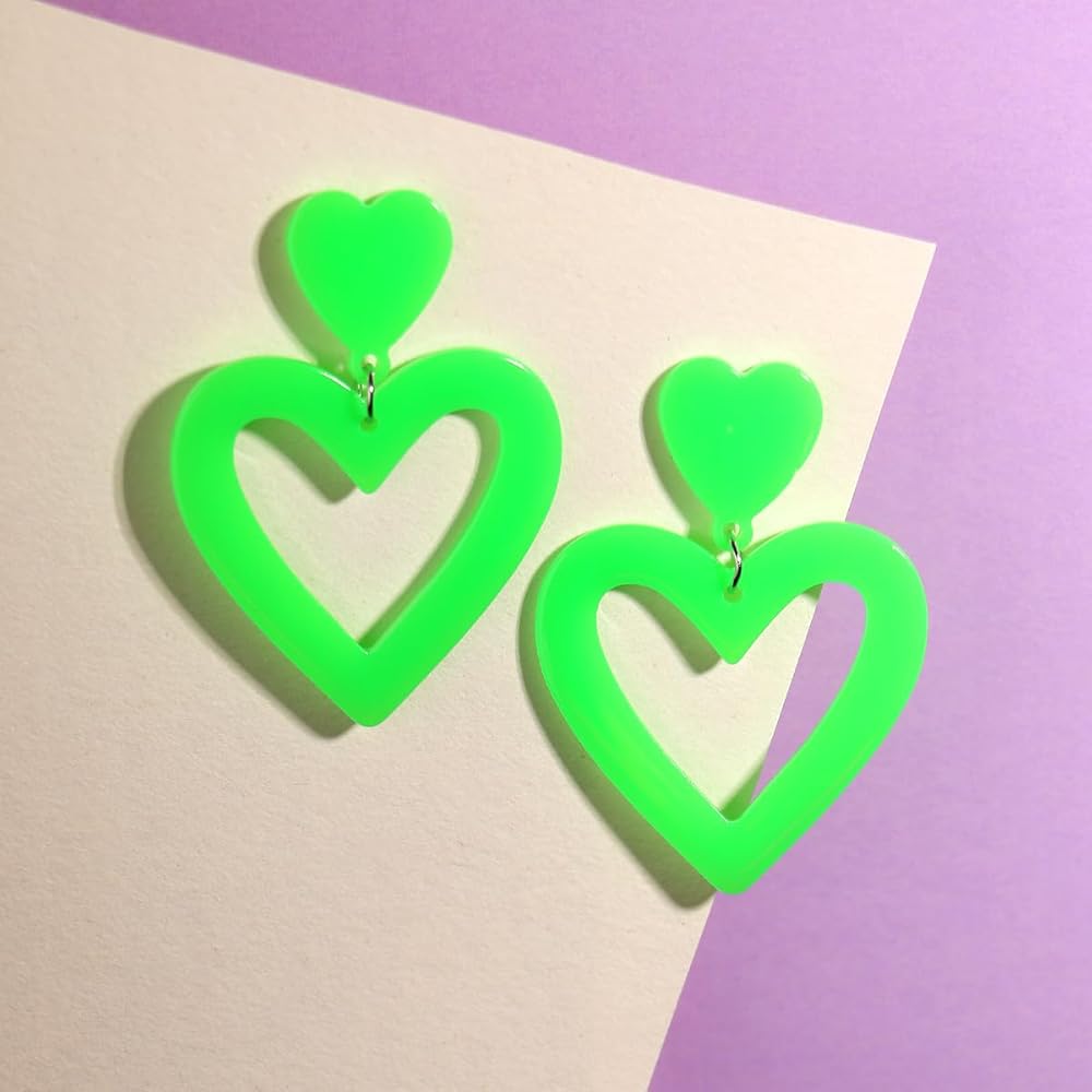 Bowitzki Heart shape earring is made of high quality Acrylic,Light weight and comfort to wear. Multi colors to choose,red,pink,purple,white,black,hot pink,pastel pink,pastel pink,yellow,orange,blue.