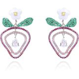 🍓Cute Hollow Strawberry Earrings🍓The enchanting pink strawberry earring is an absolute fashion statement. Composed of double-layered hollow strawberry-shaped contours with a teardrop crystal dangling in the center. Adorned with a pure white flower and lush green leaves at the top of the strawberry, the overall design exudes a sweet and fresh atmosphere. The rhinestones embedded in the strawberry contours and leaves sparkle with a captivating radiance, adding a unique charm to your ears.