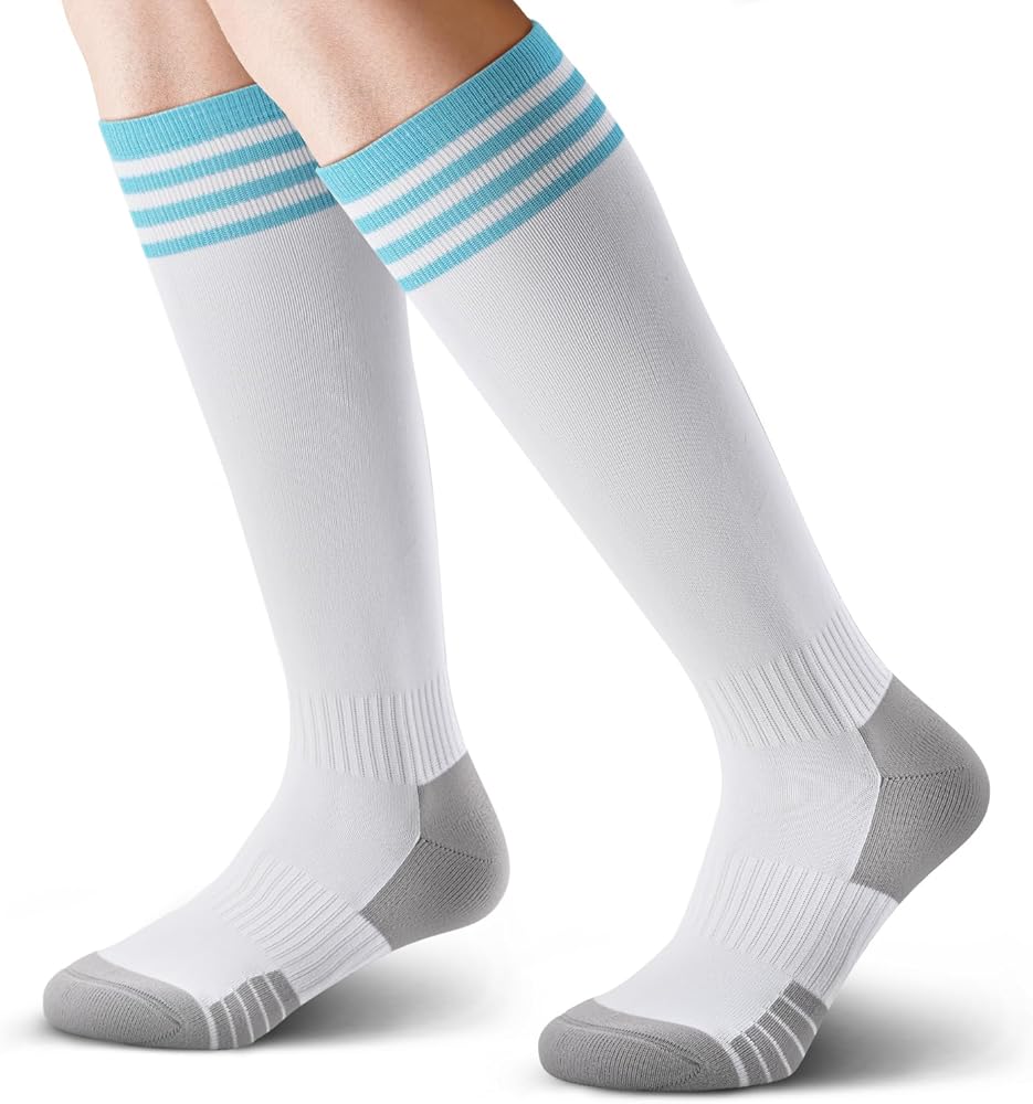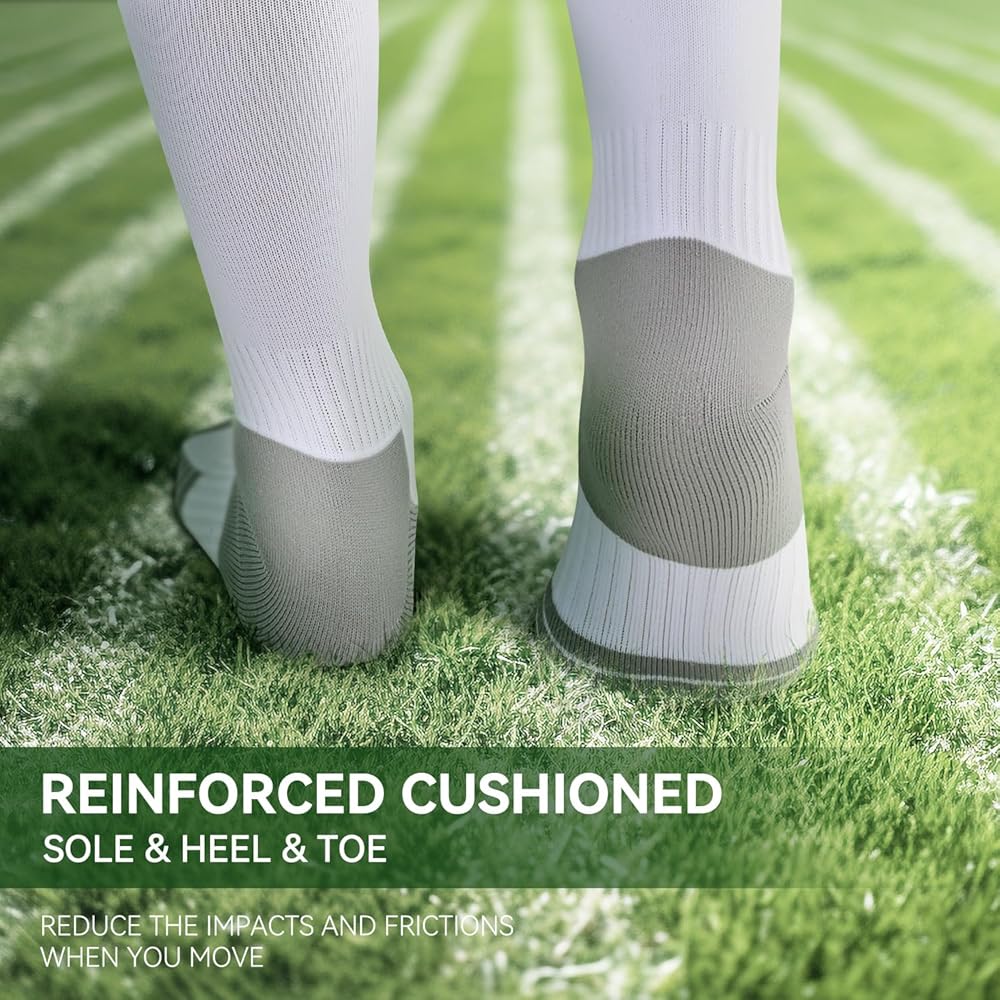 Ankle and Arch Compression:Our girls soccer socks are uniquely designed with targeted compression on the ankle and arch areas, providing a secure fit that enhances stability on the field. These soccer socks youth boys 8-12 added support not only helps in preventing injuries but also alleviates foot fatigue during those intense matches. With these boys soccer socks, you'll be able to maintain peak performance without worrying about discomfort or instability.