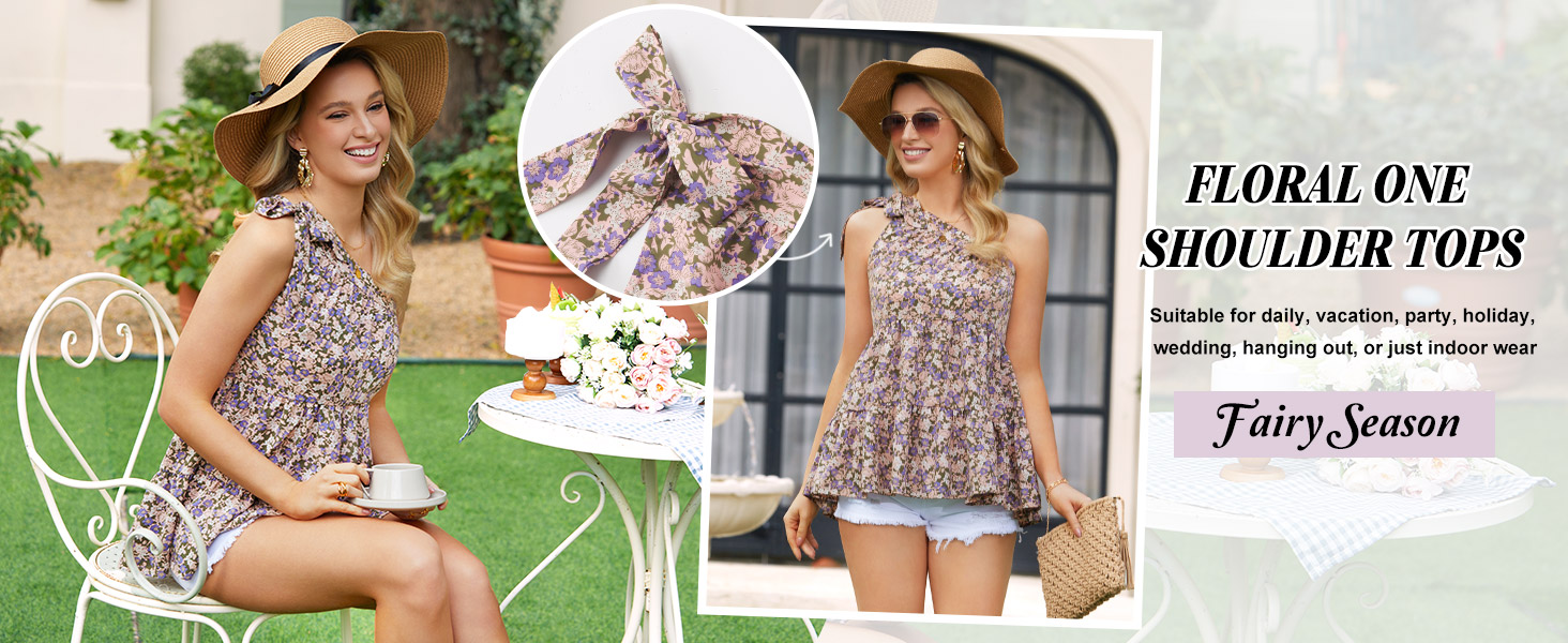 Features: Off the shoulder tops/summer tops/flowy babydall shirts/One Shoulder/Cold shoulder/ruffle/sleeveless tops/Lightweight/Loose casual/floral print tops.