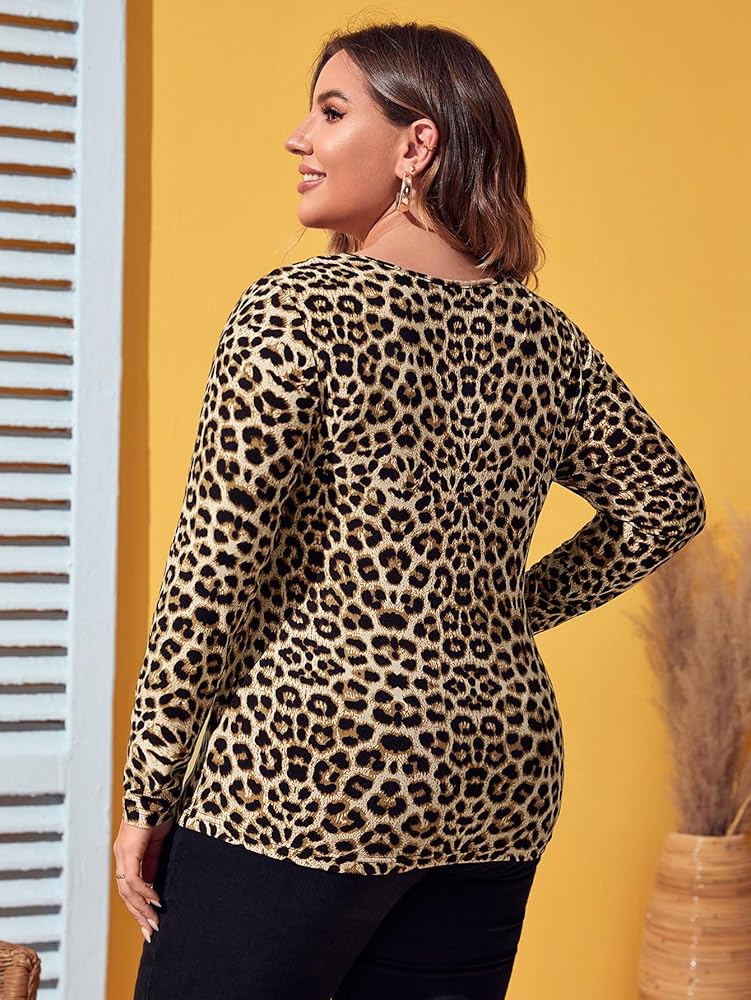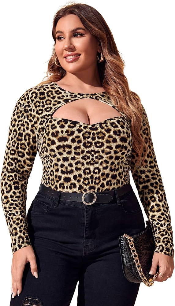 - Features: all over print, cut out front, round neck, long sleeve, slim fit, plus size sexy tops, plus size tops for women sexy, leopard tops for women