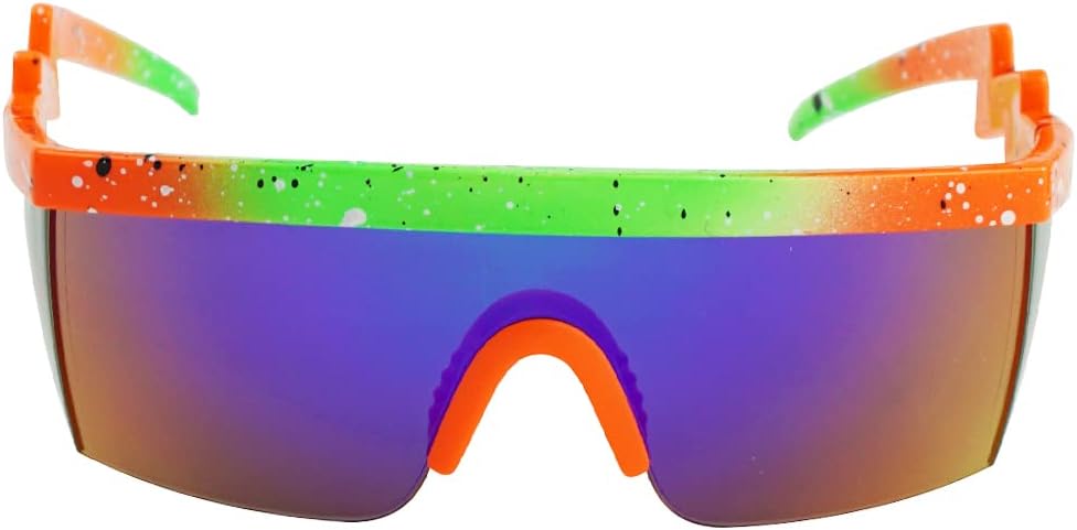 Timeless: Relive the 80's with our colorful goggle inspired rave style shades for men and women. Comes with a soft colored nose piece that gives a modern accent with a retro vibe.