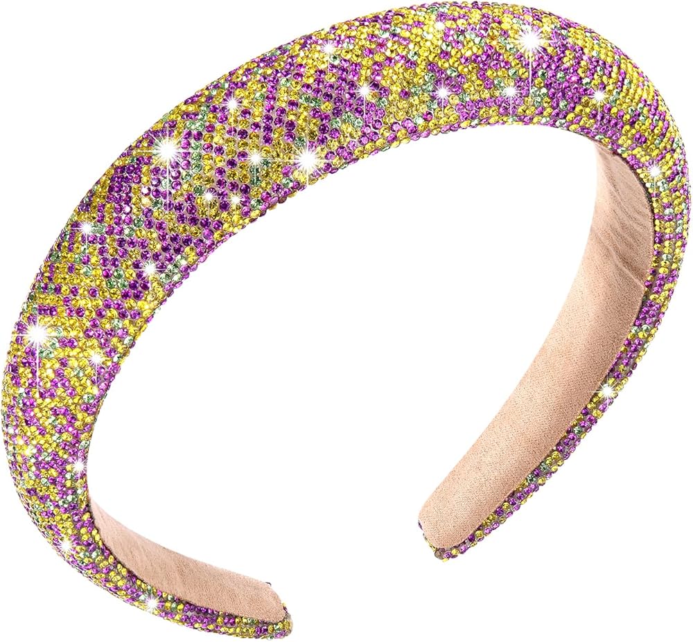 ⚜Mardi Gras Headband⚜This Mardi Gras rhinestone padded headbands is designed in 3 classic color including yellow, green, and purple, which fit for the Mardi Gras theme party and bring a sense of vigor visually; Most of them are designed with rhinestones, shiny and eye-catching; The fluffy headband with velvet padding is soft and smooth, giving you a great experience without headaches and injuries,helps you easily create a stylish and nice Mardi Gras look