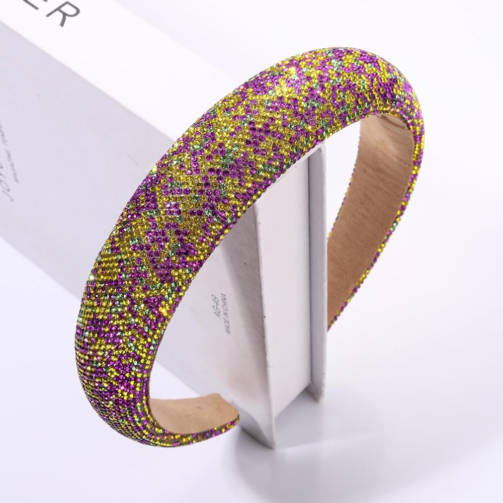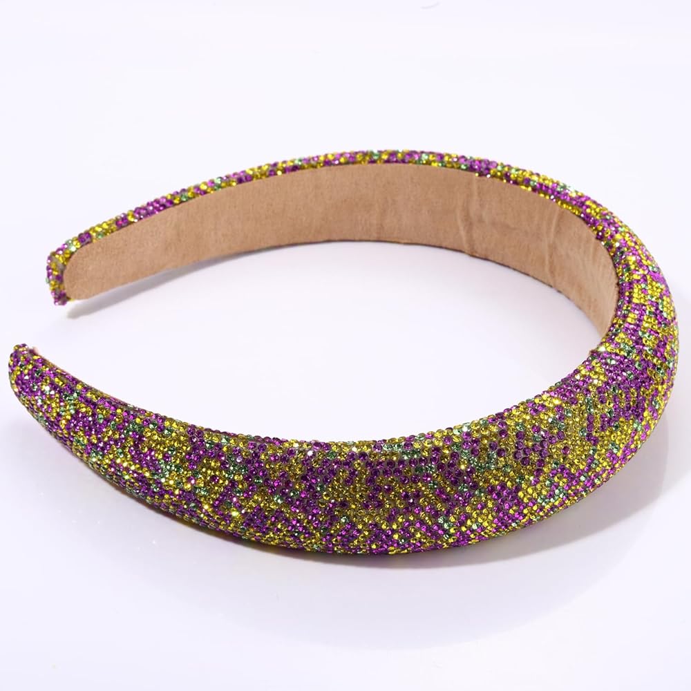 Mardi Gras Headbands Mardi Gras Rhinestone Padded Headband for Women Girls Crystal Purple Green Yellow Velvet Wide Bejeweled Hairband Holiday Party Headpiece Carnival Parade Cosplay Costume Hair Accessories