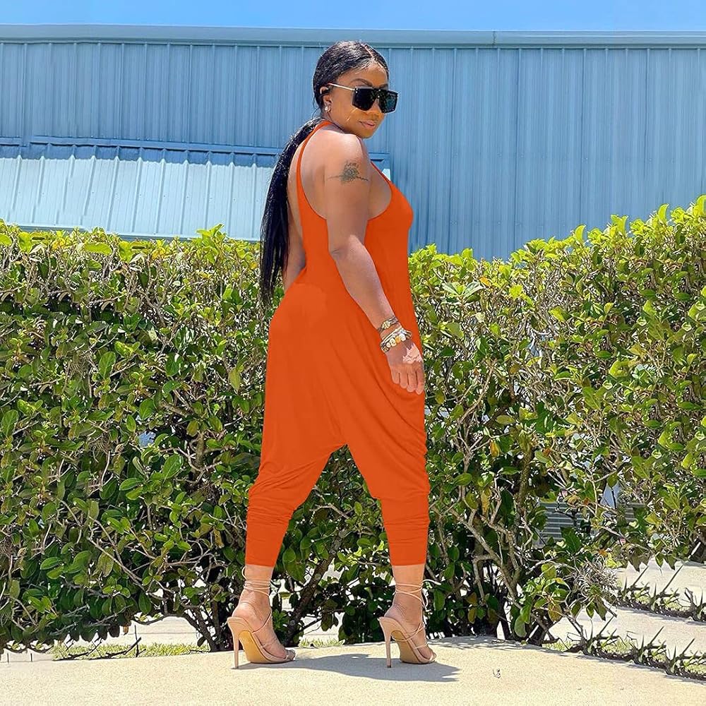 • Feature: Our summer one piece jumpsuits for women check with Solid Color, loose-fitting, racerback, high Waist, spaghetti straps and low crotch design.Sexy and Comfy .If You're Pear-Shaped, this harem jumpsuit style is more flattering on you.Suitable for other body type as well