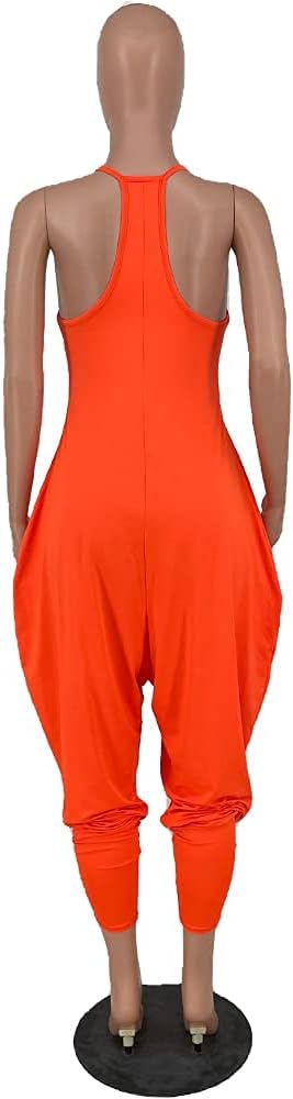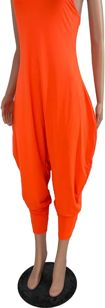 Women‘s Casual Slouchy Jumpsuits Summer Spaghetti Strap Racerback Low Crotch Harem One Piece Outfit