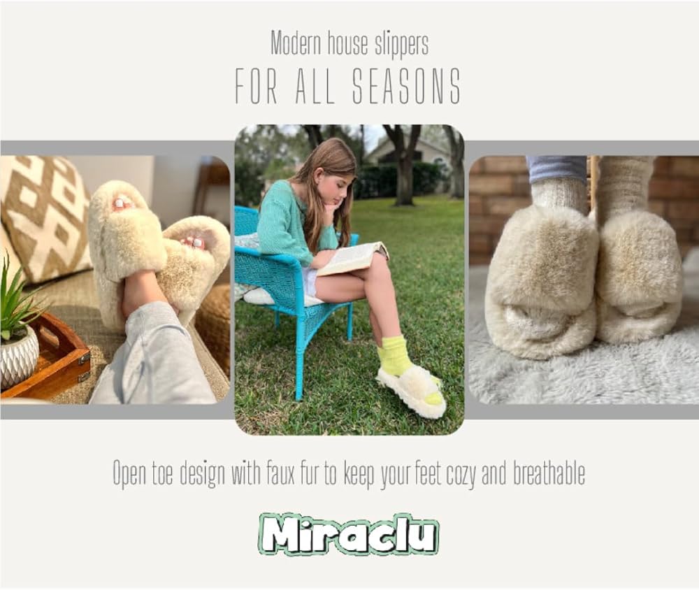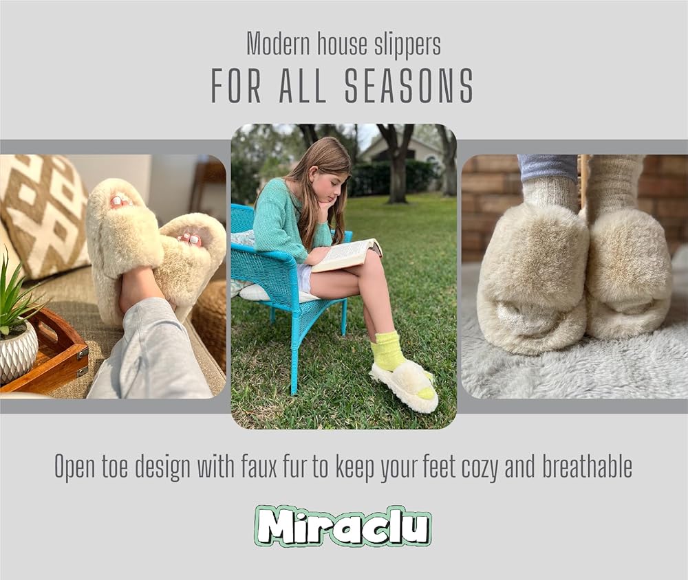 [VERSATILE USE/ FOUR SEASONS]: Platform slippers for all four seasons. The faux fur keeps your feet cozy, and breathable because of the open toe design. Great choice for house slippers. Indoor/outdoor