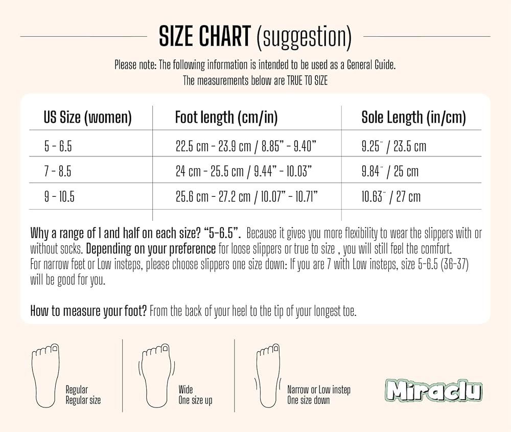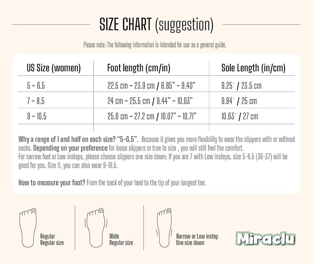 [SIZING GUIDE & CARE INSTRUCTIONS]: Please measure the length of your feet and refer to the size chart. Gentle clean and use. Spot clean with mild soap. Air dry. Do not bleach.